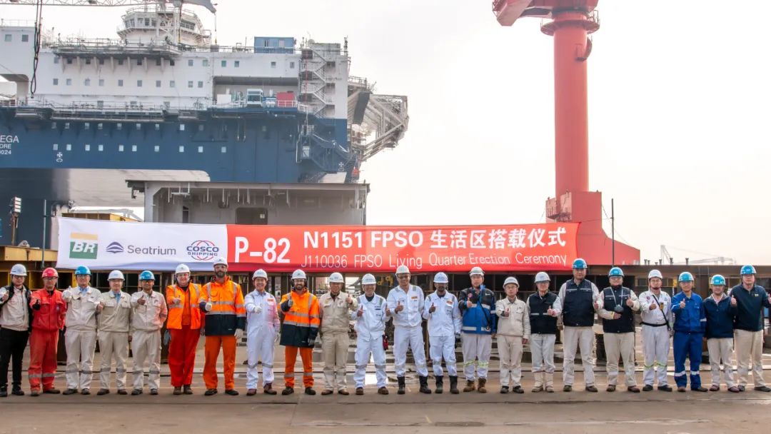 啟東中遠海運海工舉行N1151 P-82 FPSO生活區(qū)模塊搭載儀式