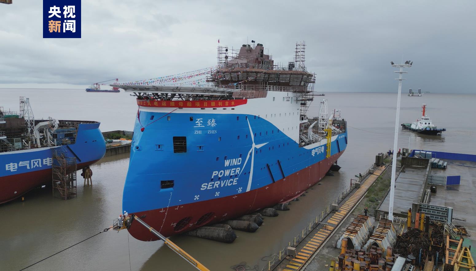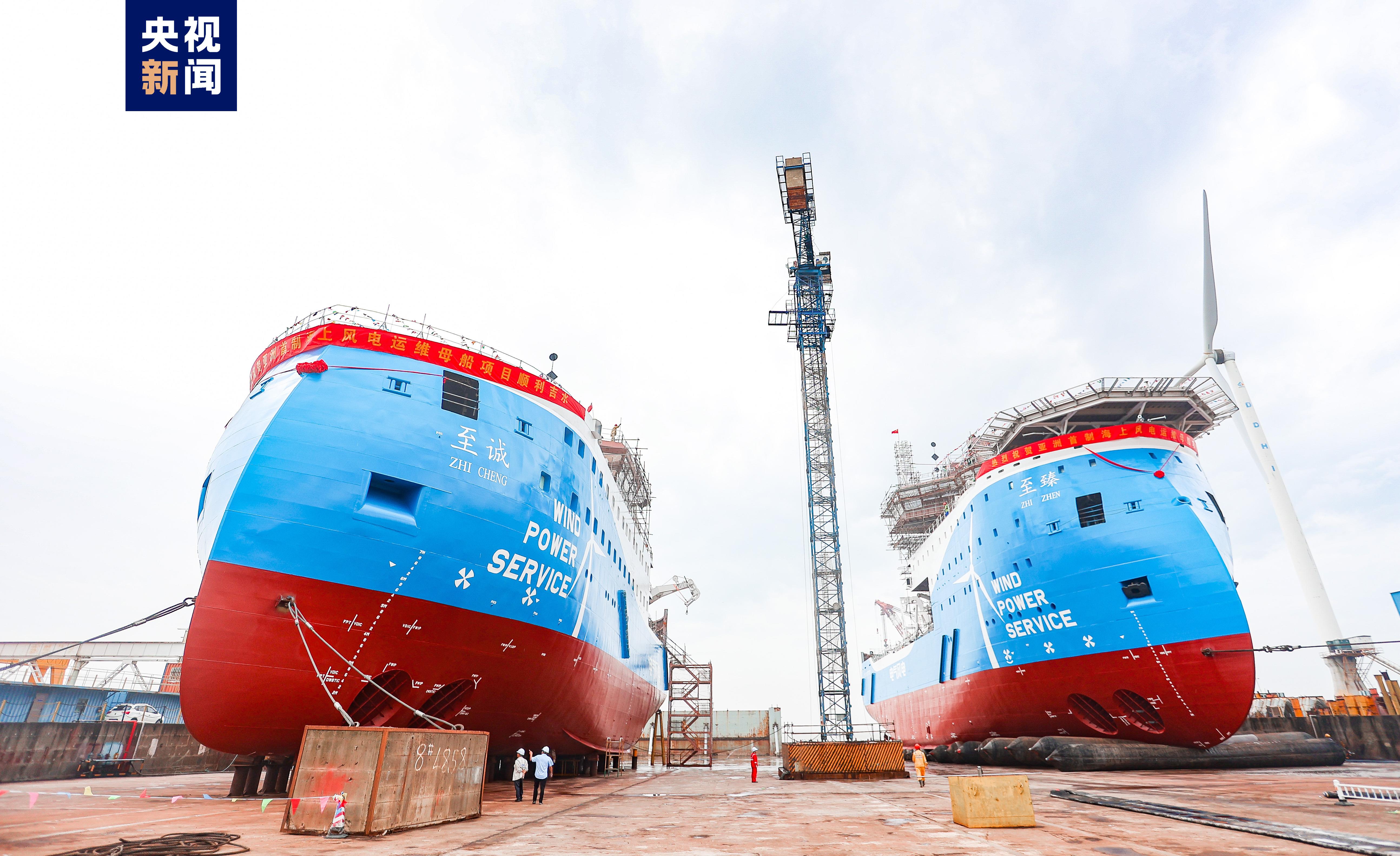 記者9月16日獲悉,亞洲首制可容納100人的風電運維母船下水。